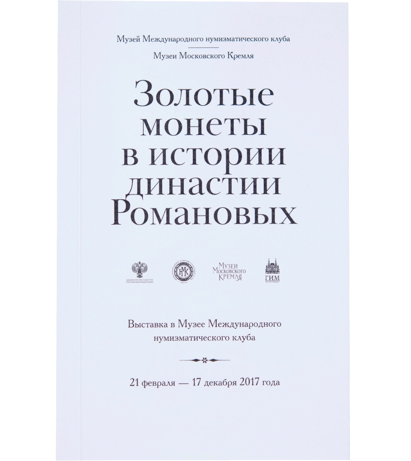 «Золотые монеты в истории династии Романовых»: выставка (Москва, февраль—декабрь 2017 г.) / Музей Международного нумизматического клуба; [авт. С.В. Зверев]. — Москва: Лингва-Ф. 2017 — 36 с.: ил.